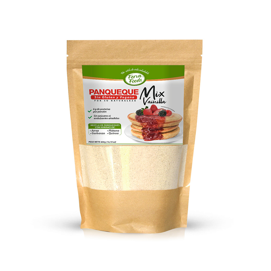 Eleva tu alimentación con el Panqueque Mix de Vainilla Ferva Foods. Esta mezcla innovadora te permite preparar deliciosos panqueques y hot cakes que son mucho más que un gusto.