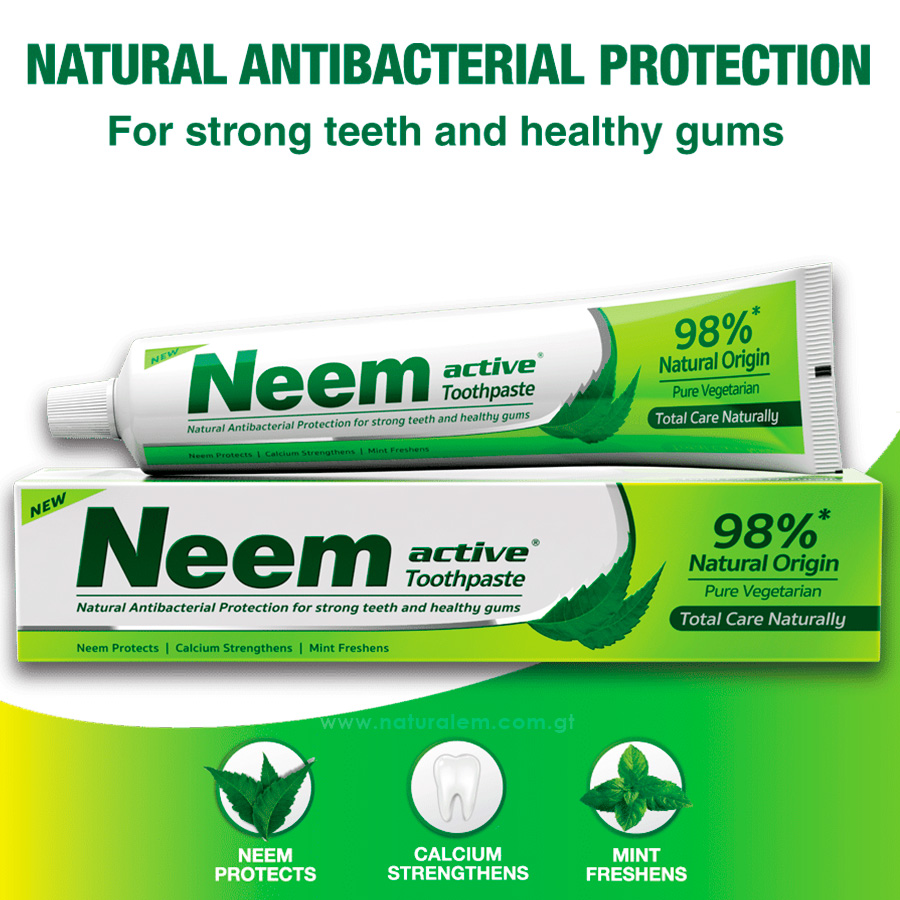 Eleva tu higiene diaria con la Pasta Dental Ayurvédica Neem Active. Esta fórmula única de origen 98% natural combina las propiedades medicinales de la corteza de Neem con la frescura de la menta, ofreciendo un cuidado completo para toda tu familia.