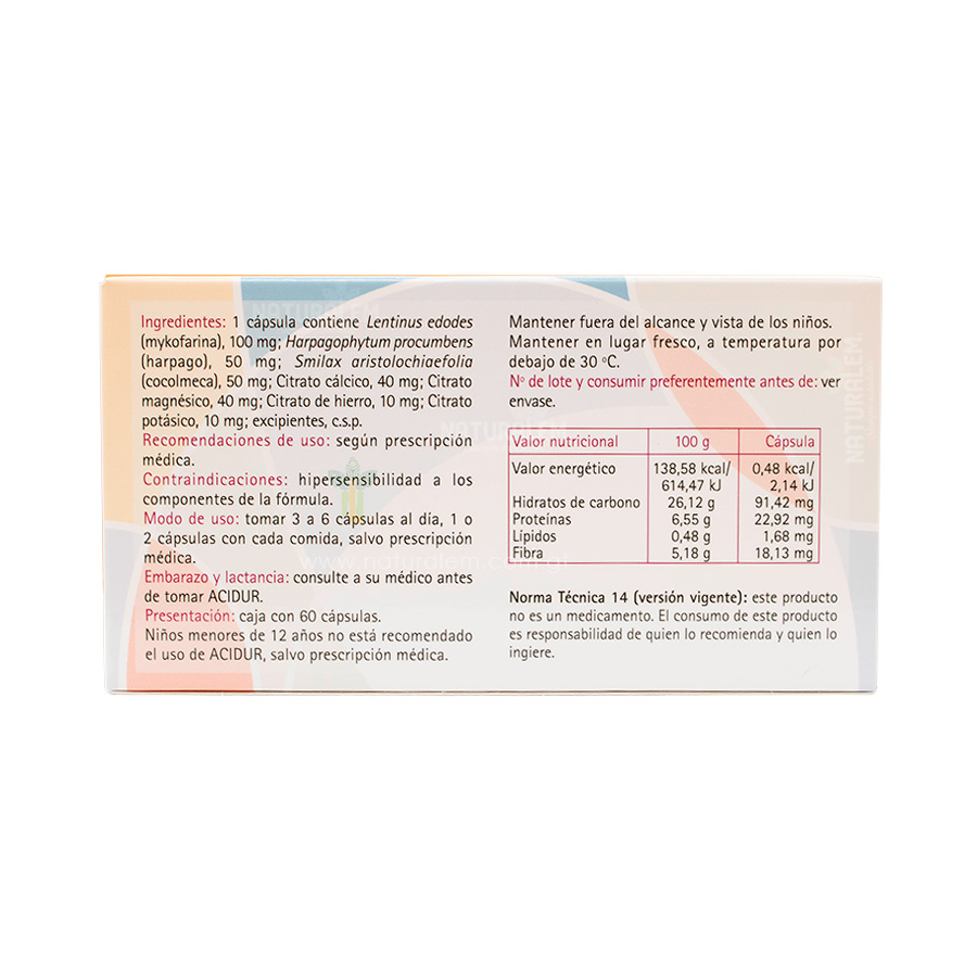 La potencia de Acidur radica en una fórmula que combina la sabiduría herbal con la ciencia mineral, cada cápsula contiene: